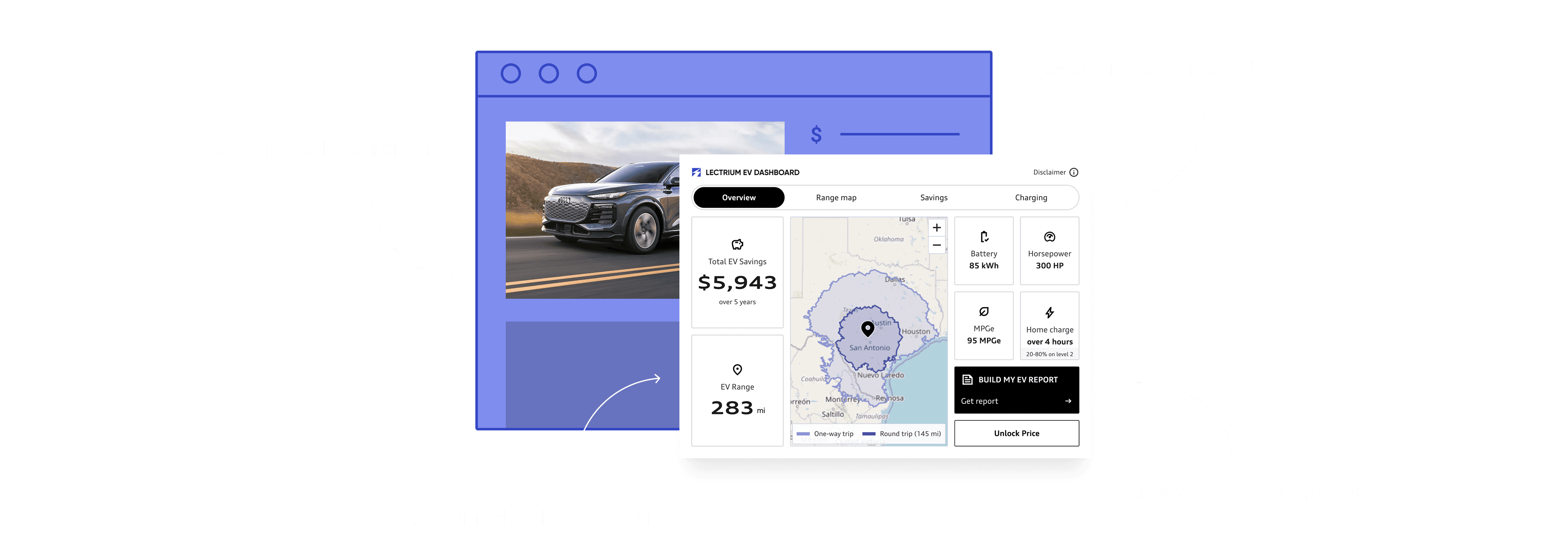 The Lectrium Dashboard transforms your Vehicle Detail Pages into intelligent, interactive experiences that help shoppers understand electrified vehicles and move forward with confidence.