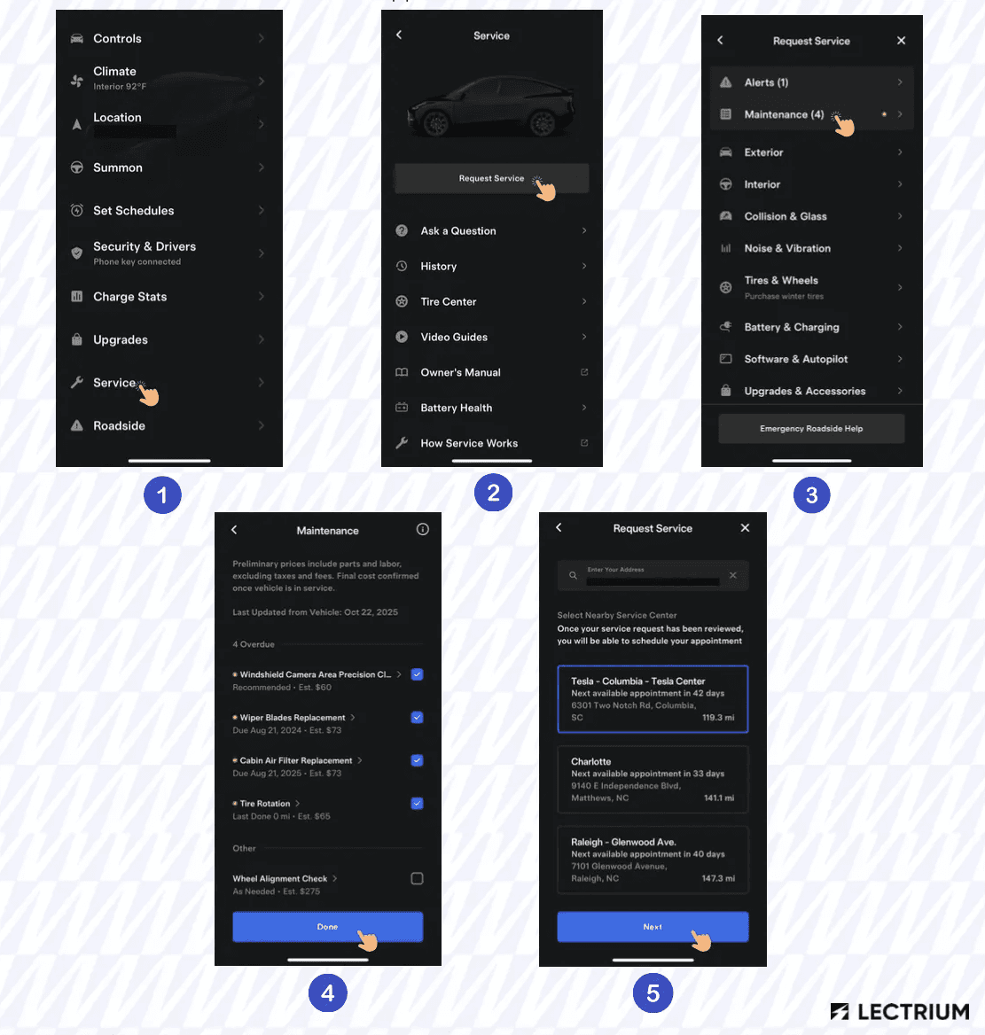 Once ownership is transferred, your service department can schedule Tesla reconditioning directly through the app.