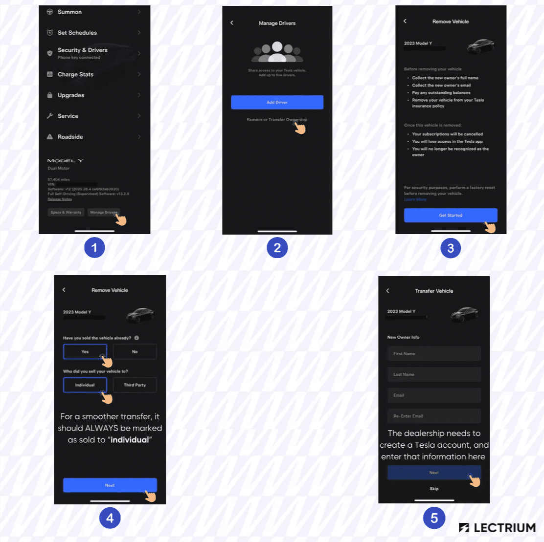 Unlike other OEMs, Tesla uses an app-based ownership transfer process.