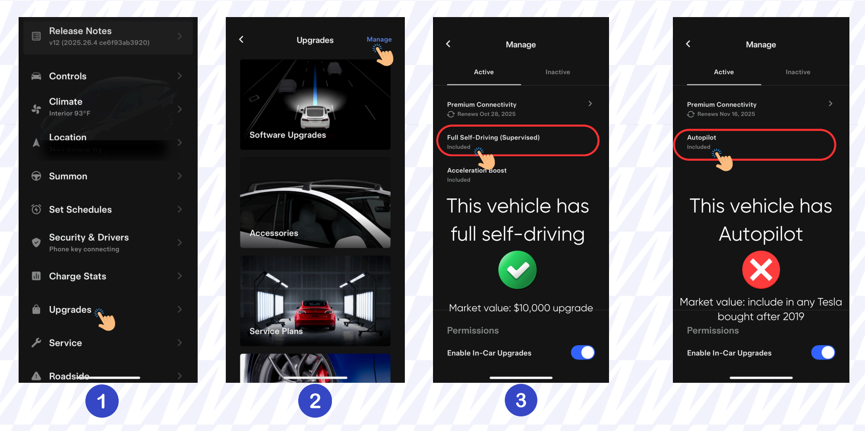 Pro tip: FSD subscriptions have expiration dates—always note them before listing the vehicle.