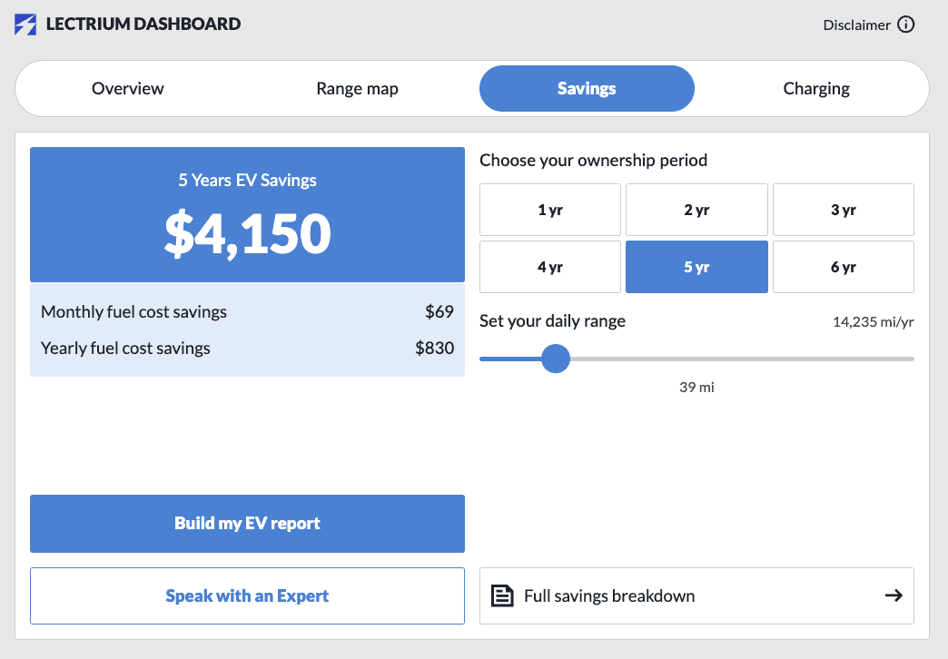 Even though the federal EV tax credit has expired, the financial benefits of owning an electrified vehicle haven’t gone anywhere. In many cases, the long-term fuel and maintenance savings actually surpass the value of the tax credit itself. The Lectrium Dashboard’s Savings tab brings this story to life by showing the actual math behind EV ownership.