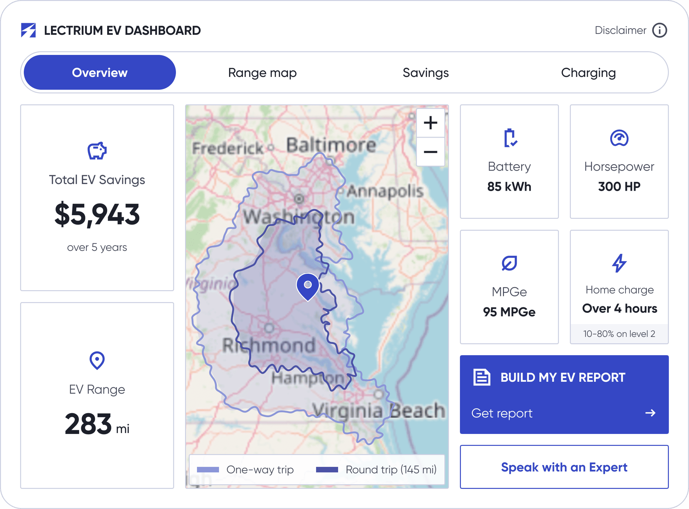 The EV Report provides comprehensive, shareable summaries that sales teams can reference during conversations or send to customers for further consideration.