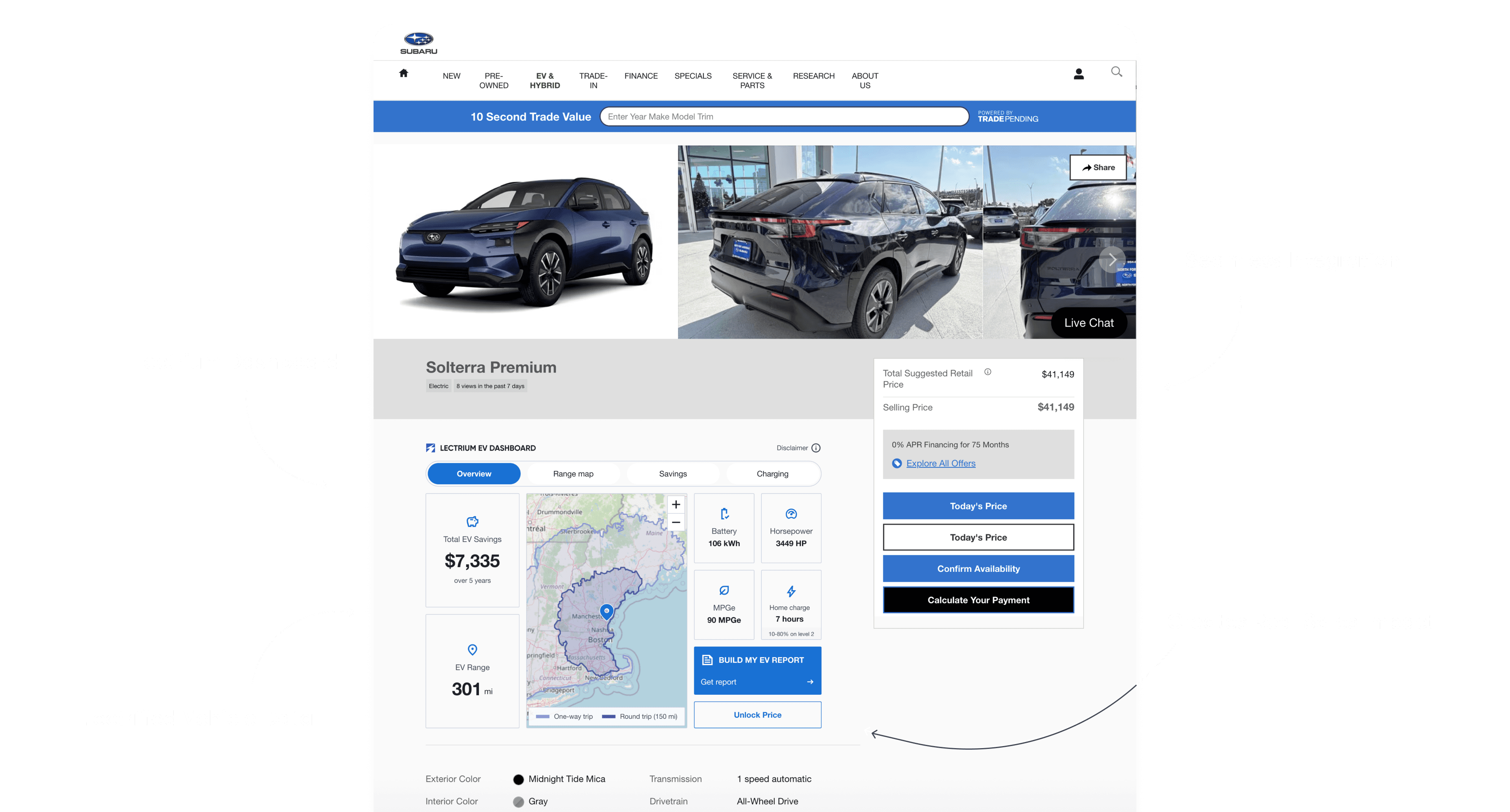 With clear insights into range, charging, ownership costs, and more, customers stay longer on your site exploring electrified Subaru models and move further into the purchase journey with greater confidence.